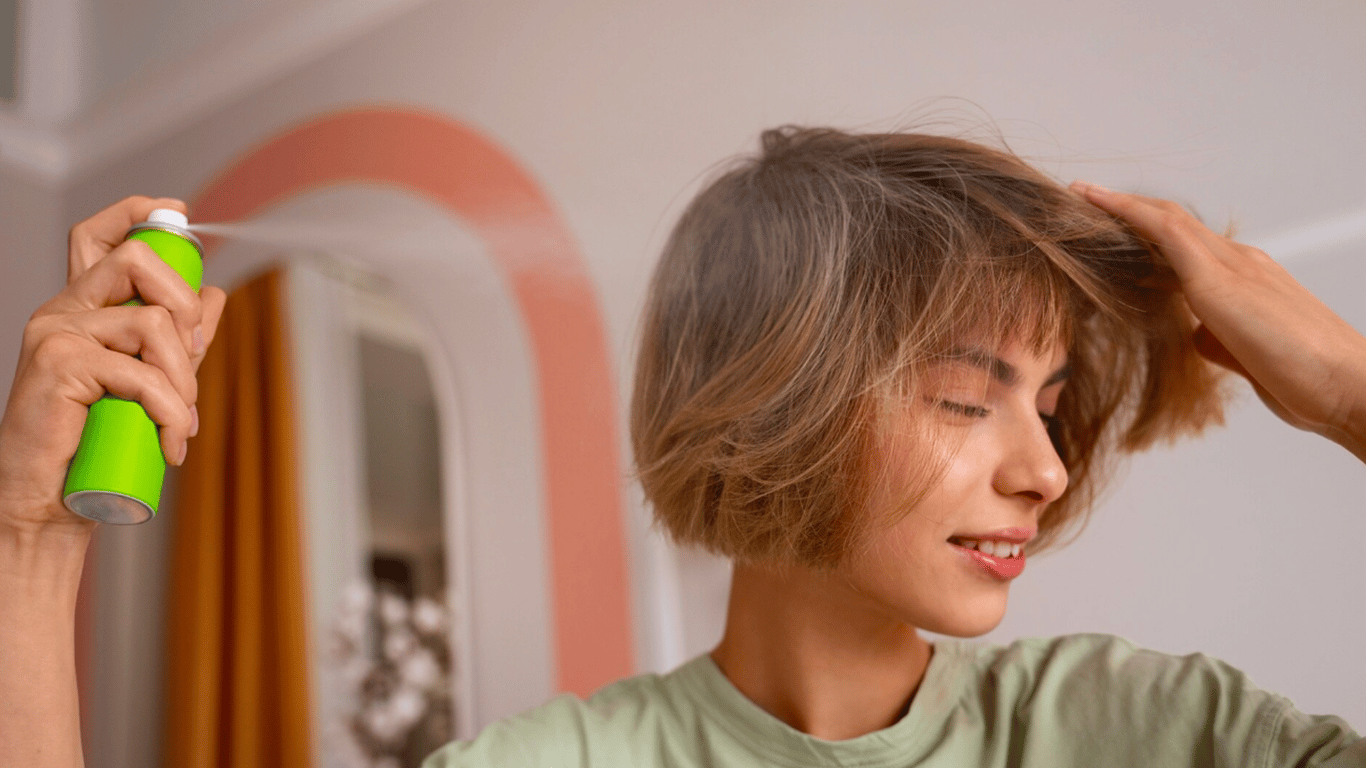 Дівчина наносить сухий шампунь на волосся. Фото: freepik